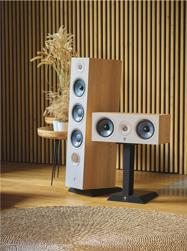 Chora整合了法國制造的音響單元,還擁有專屬的石板纖維音盆,這是FOCAL 40多年聲學研究的成果。每個細節都經過仔細斟酌,以滿足用戶對聲音再現和設計的預期。Chora 揚聲器系列利用為 Utopia III 系列開發的技術進步(如倒置圓頂高音喇叭),為中檔揚聲器和低音揚聲器采用了FOCAL獨特的技術:Slatefiber膜,一種由熱塑性聚合物制成的復合三明治錐體,具有未編織的再生碳纖維。它優異的"Ardoise"效果使它能夠產生更大的阻尼、剛性和輕度:一個好的揚聲器。因此,在提供軟針的TNF鋁/鎂高頻揚聲器的旁邊,Woofers slatefeber提供重型鉸鏈和精密介質,得益于揚聲器支架的傾斜,"時間一致性"可以提供比較合適的聲音場景,并更加集中于聽眾。