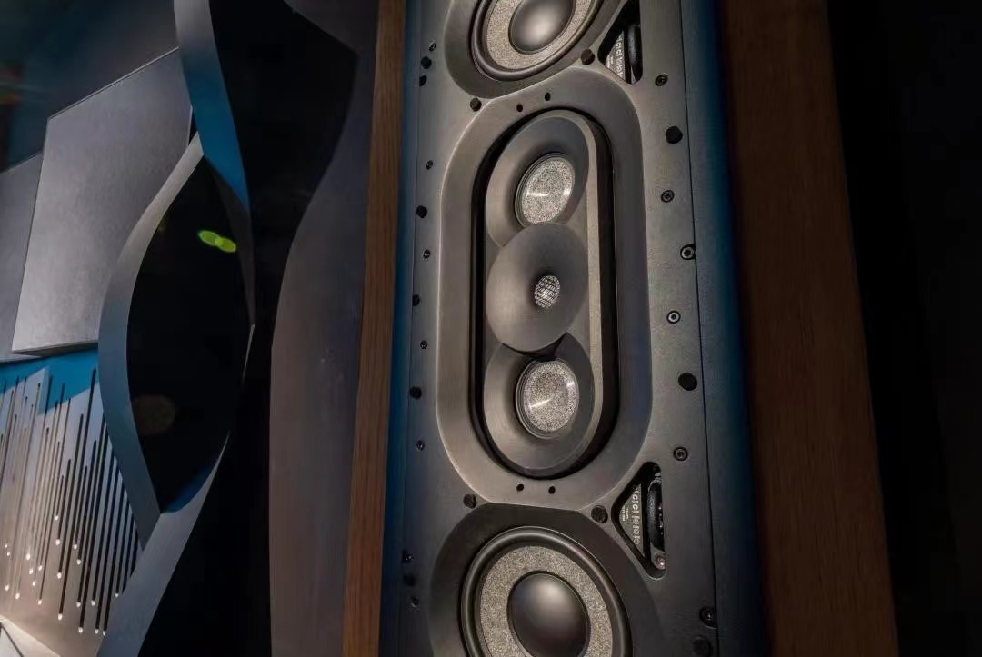 這套系統的整體性能是無可挑剔的,將低音炮與揚聲器集成到相同的音柱中是一項了不起的壯舉。除此之外,吊頂上還有四個1000 ICLCR5,能讓您享受高水準的聲音體驗。1000 ICLCR5非常特別,使用了一只1英寸的純鈹反轉球頂高音單元,高音單元和框架間應用了FOCAL的Prono懸吊技術,這是FOCALUtopia(烏托邦)揚聲器的技術下放。緊連于高音的是一個4英寸的W復合三明治錐盆中音。IC LCR5特別的地方在于其高音和中音是一個可調角度的總成,雖說這是一只天空聲道,但是為什么又命名為LCR呢?原因就是它的可調節高/中音總成,這只IC LCR5即使安裝在天花板上,都能夠讓用戶感覺聲音是從前方發聲一樣。原廠還提供了高/中音的量感調節,高音有+/-3dB的調整、中音有+/-2dB的調整,如此可以根據用于不同的空間聲學條件來進行調整。此外,2只5英寸;W復合三明治低音位于可調單元的另一面,低頻響可達45Hz(-6dB)。
