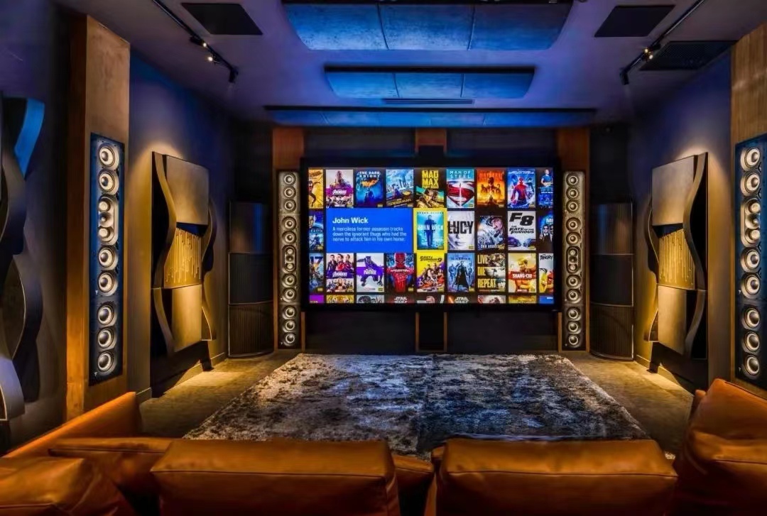 視聽室這里是采用了9.9.4家庭劇院視聽室,全套Focal 1000 Utopia系列組成的9.9.4全景聲烏托邦影院系統,擁有表現力。該系統由9個1000 IWLCR Utopia、12個1000 IWSUB Utopia和4個 1000 ICLCR5吸頂式組成。前三聲道和側環繞、后環繞均選用1000IWLCR UTOPIA+1000IWSUB UTOPIA的組合。不僅具備了搭配組合的擴展性,還具有強大、寬容的調校、調整功能。