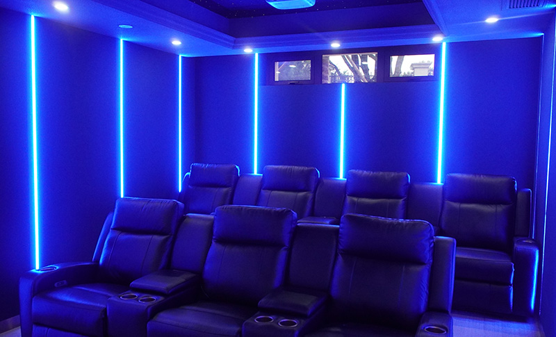 私人家庭影院裝飾風(fēng)格的視聽室。在設(shè)備方面,私人家庭影院的音響系統(tǒng)是客戶原有的專業(yè)視聽設(shè)備,卡拉OK該系統(tǒng)是視聽系統(tǒng)升級的增加部分。