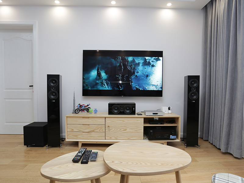 一般來說,對于普通消費者來說,更基本的音響設備是5.1音道家庭影院,由一對主揚聲器多聲道組成.一對環繞式揚聲器由多個聲道和一個中央揚聲器組成,而發燒級客廳家庭影院的音響設備為7.1聲道,增加了一對側環繞式揚聲器,給人更好的觀看效果。嵌入式家庭影院揚聲器巧妙地隱藏在墻上,不僅大大節省了空間,而且網罩的顏色選擇也能創造出美麗統一的裝飾效果。