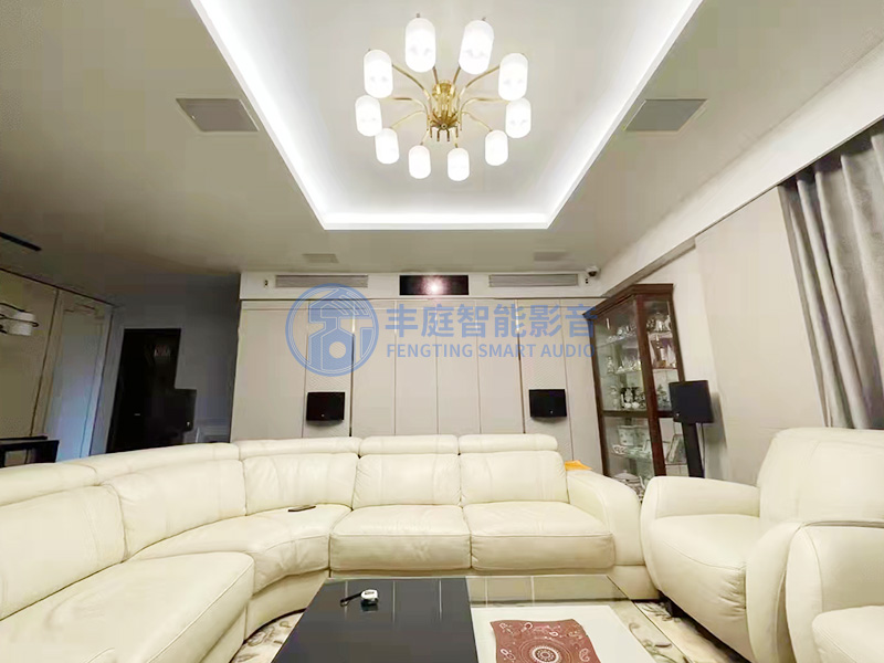 而對于音響方面,我們從原來5.1的系統升級成杜比全景聲9.2.4,后環繞采用法國focal勁浪SR900標志性的偶級環繞,但是由于安裝的限制又在兩邊專門定制的腳架;全景聲天花聲道與前置高聲場采用的focal勁浪300IW6純進口嵌入式揚聲器。