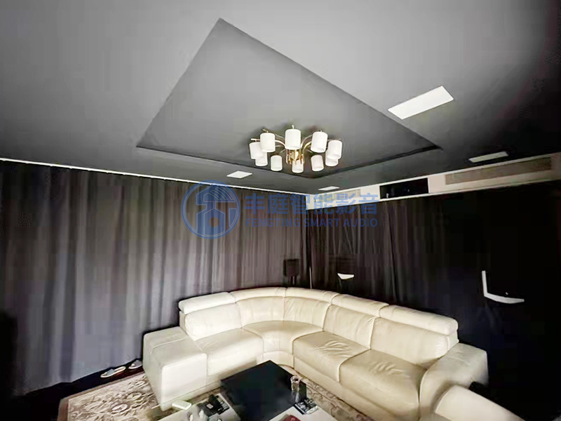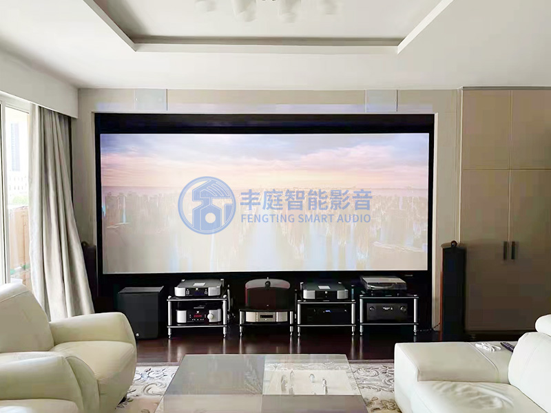 為了滿足整體的視覺效果和音響升級的條件,客廳做了簡單的裝修調整,安裝調試完畢,音效非常好,視頻有非常大的提升,但是由于頂面是白色乳膠漆,對投影機的黑位有一定的影響,從技術角度我們給客戶去做了分析,孟老師是容不得缺陷,過了兩天,把頂面也刷成灰色系,整體的視覺與沉浸感又上了一個新臺階. 發燒是一種態度,愛好難得