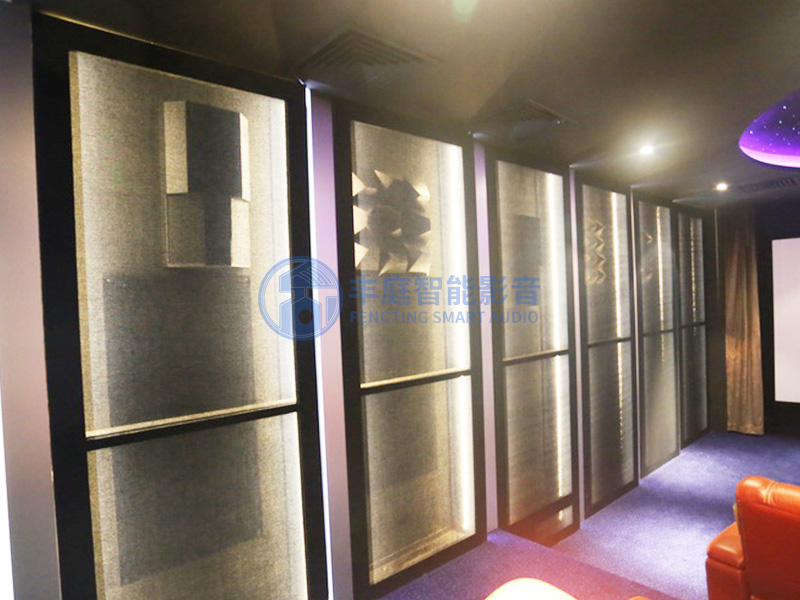而對于聲學方面,由于空間的長寬比例按空間標準提空間標準提前規(guī)劃,所以后期聲學處理的重點放在了混響時間的處理以及部分頻段的優(yōu)化上,考慮到整體裝修完成的美觀性,墻面聲學做隱藏排布加上環(huán)保吸引體配合木質(zhì)三維擴散的排布,保證整個聽音頻段的均衡輸出,加上地面全鋪沙發(fā),中高頻混響時間在0.33秒,中低頻混響時間在0.42秒。除了聲學積極嚴苛以外,客戶劉總對整體裝修細節(jié)和風格都有自己特殊的看法整個空間面積在50平左右,一共擺放了8張專業(yè)沙發(fā),在設計之處,考慮到了這8個位置都能滿足音視頻的效果,也對8只沙發(fā)進行實地測試。
