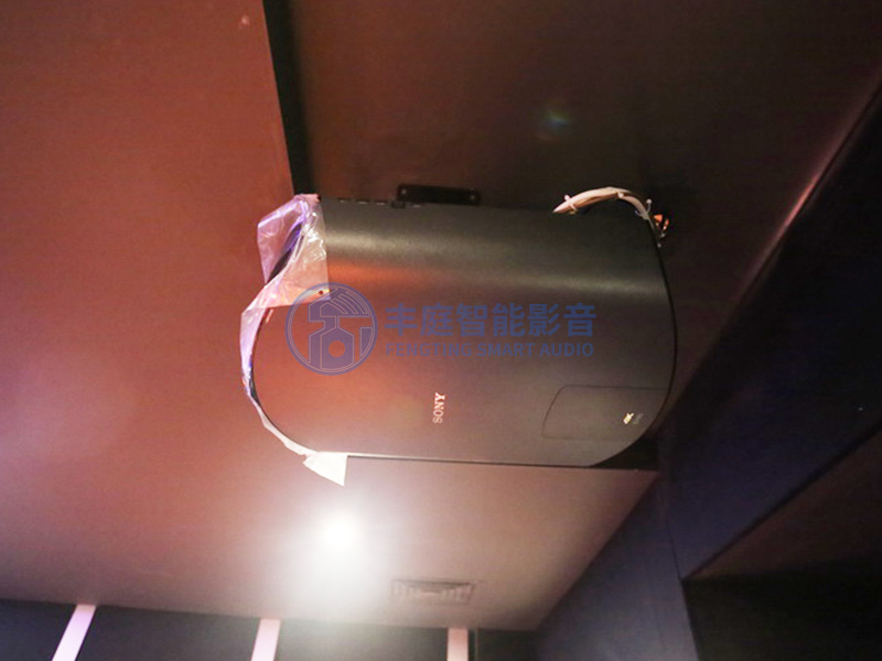 劉總作為視頻發(fā)燒友,對好萊塢大片接近癡迷的態(tài)度,在設計之初就考慮了180寸2.35:1的比例的大熒幕,追求巨幕觀影帶來的視覺沖擊,這也是好萊塢電影的拍攝比例的標準。為了消除環(huán)境的光污染,前墻做的遮光布吸光,另外三個墻面都是深顏色的透聲布修飾,在7米的投射距離下,選擇了sony的家用旗艦機598,全暗環(huán)境下,灰階使黑白位更加 均衡,將圖像色彩效果很好呈現(xiàn)出來
