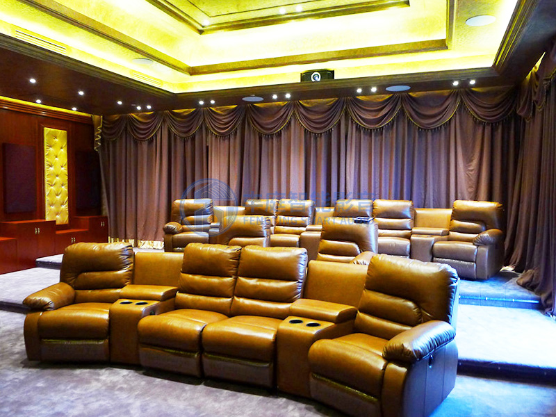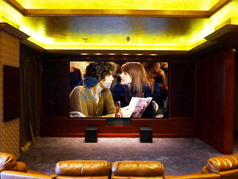 其他的問題,比如設備柜是放在隔壁專門的設備間里,可以通過簡單的中控系統來控制播放和燈光,在房間處理上定制了不同厚度的吸音軟包來對房間的頻率響應進行有效的優化,同時也降低了混響系數,使得整體效果很好。