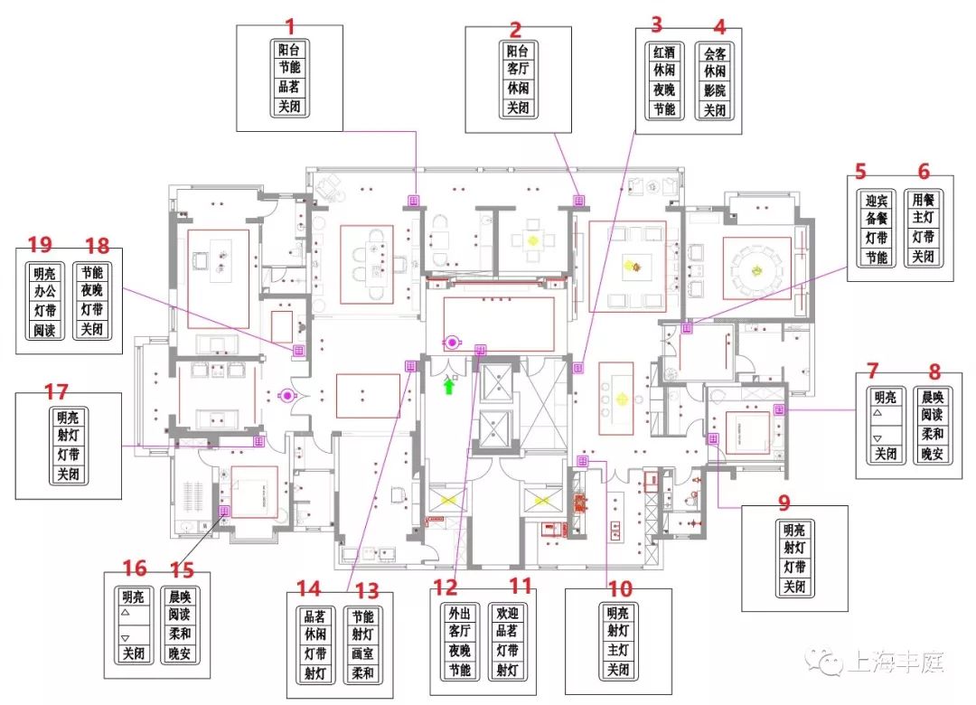 整個(gè)房間內(nèi),我們根據(jù)客戶(hù)的實(shí)際需求設(shè)定了兩個(gè)路創(chuàng)無(wú)線(xiàn)占空傳感器,可指令兼容的無(wú)線(xiàn)控制器在房間無(wú)人時(shí)能自動(dòng)開(kāi)關(guān)和調(diào)暗燈光,節(jié)能、給客戶(hù)帶來(lái)更多的享受。